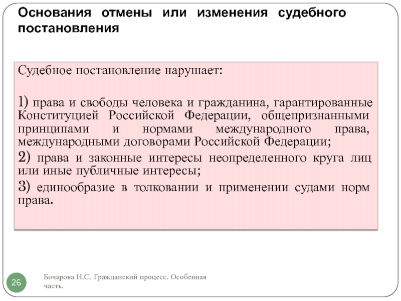 Слайд 26Основания отмены или изменения судебного постановления