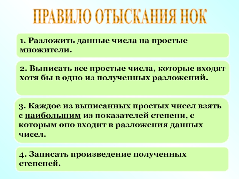 Сформулируйте правило отыскания НОК двух чисел, в соответствии с пунктами 1, 2, 3.
