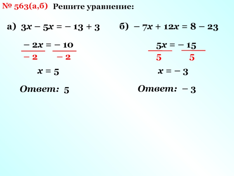 б) – 7х + 12х = 8 – 23