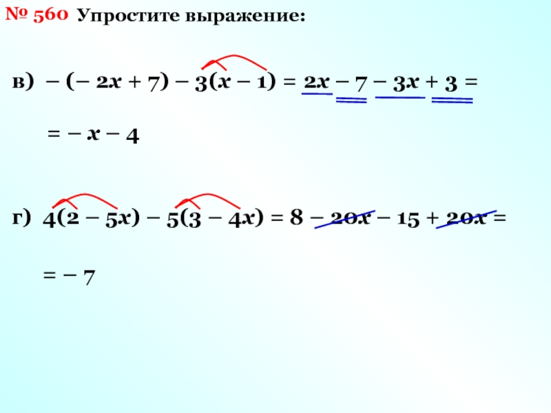 в) 5а – 2(7 – а) =