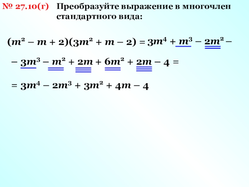 = 3m4 – 2m3 + 3m2 + 4m – 4