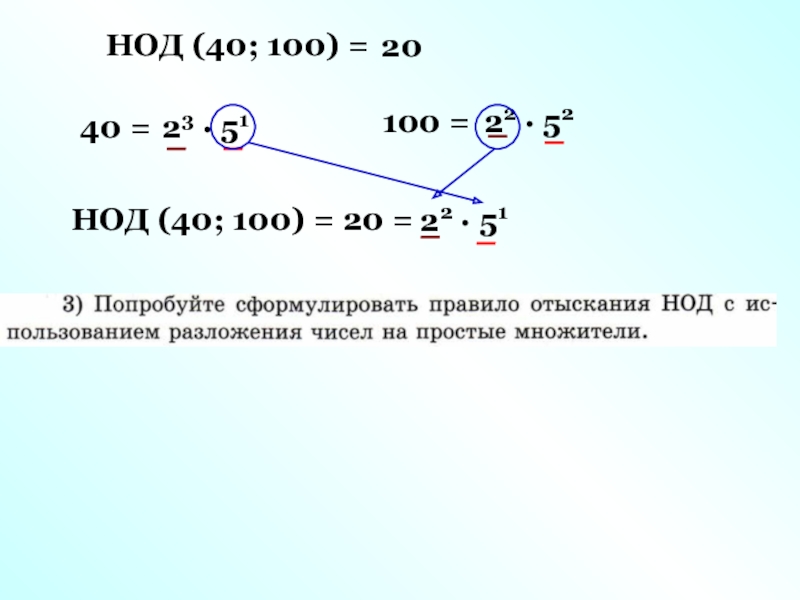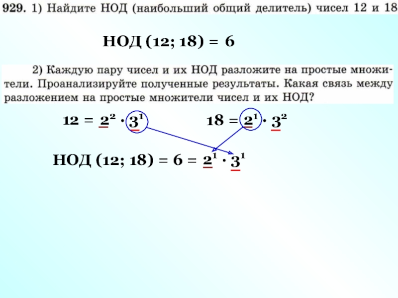 3. Каждое из выписанных простых чисел взять с наименьшим из показателей степени, с которым оно входит в разложения данных чисел.