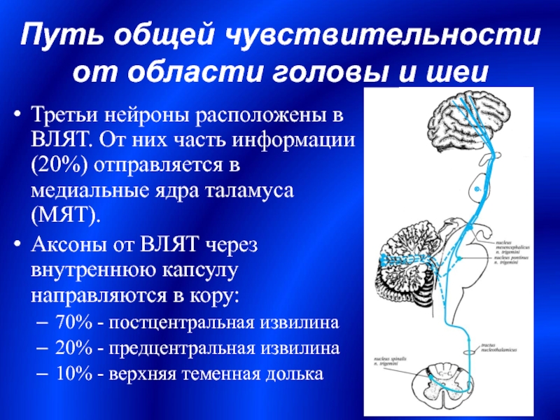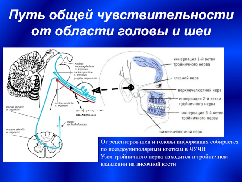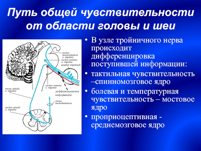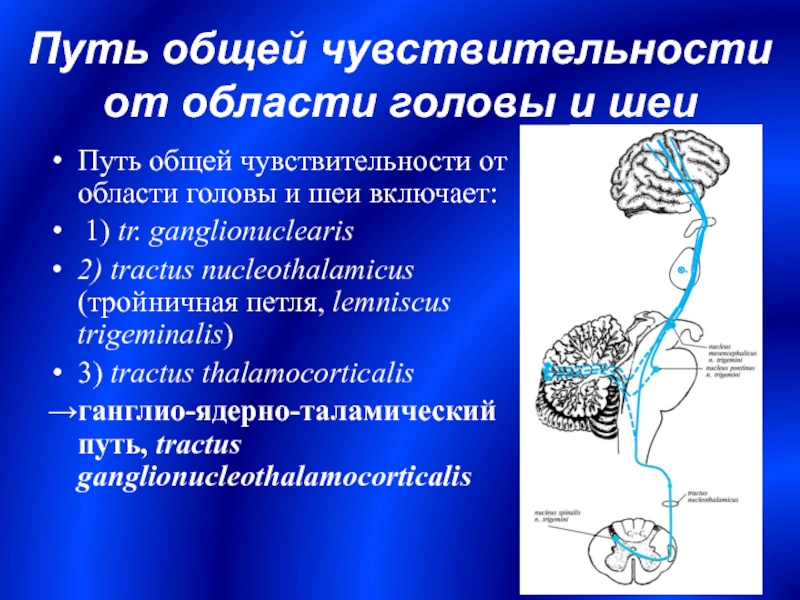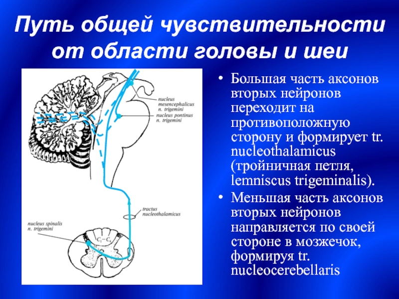 Слайд 19Путь общей чувствительности от области головы и шеи
