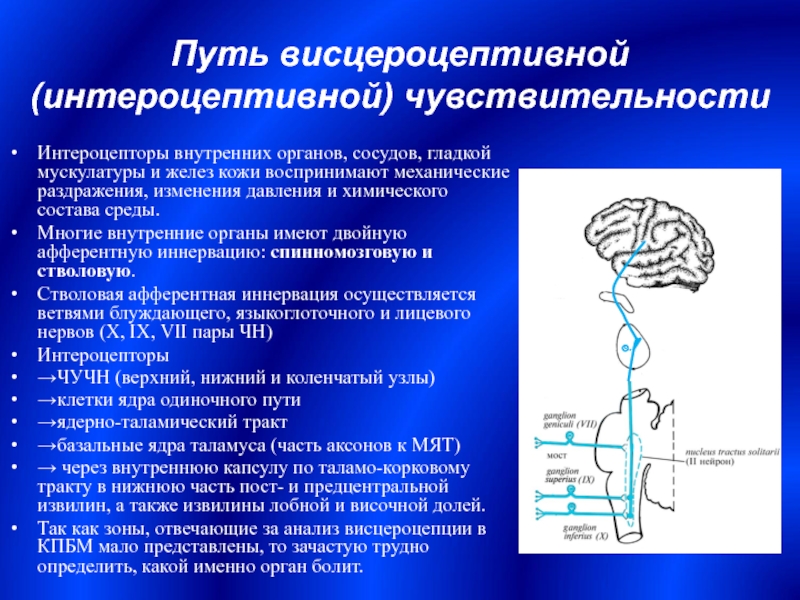 Слайд 20Путь висцероцептивной (интероцептивной) чувствительности