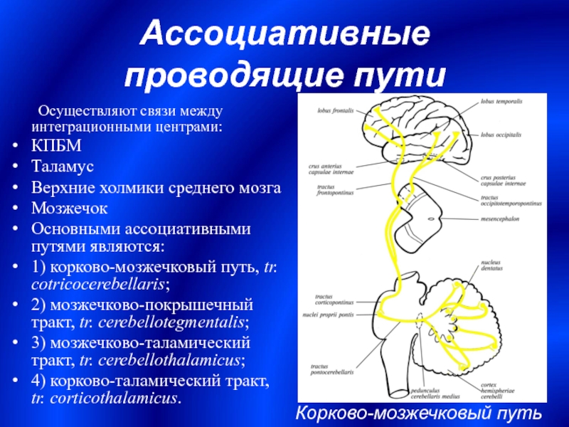 1) корково-мозжечковый путь, tr. cotricocerebellaris;