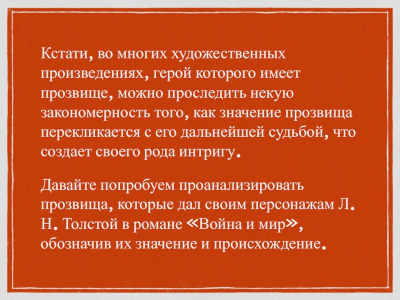 Прозвища в романе Война и мир: этимология и значение, особенности
