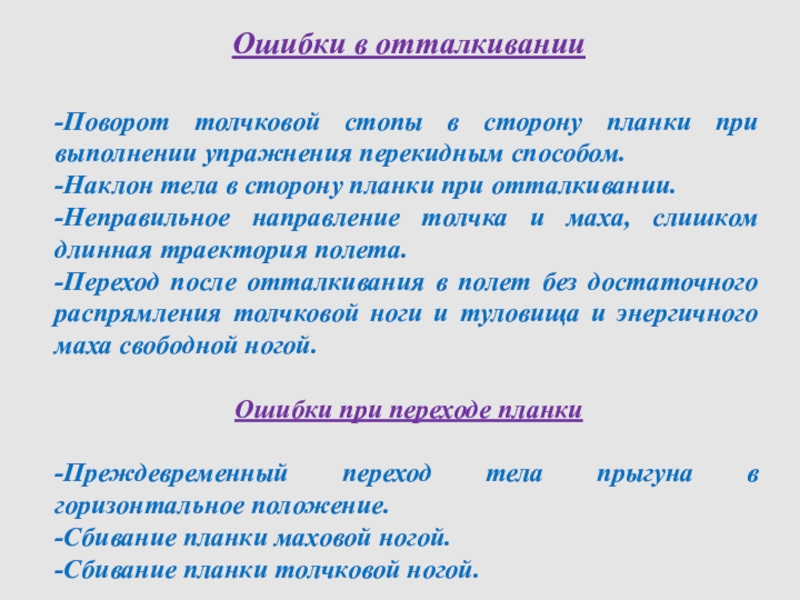 Слайд 14Ошибки в отталкивании