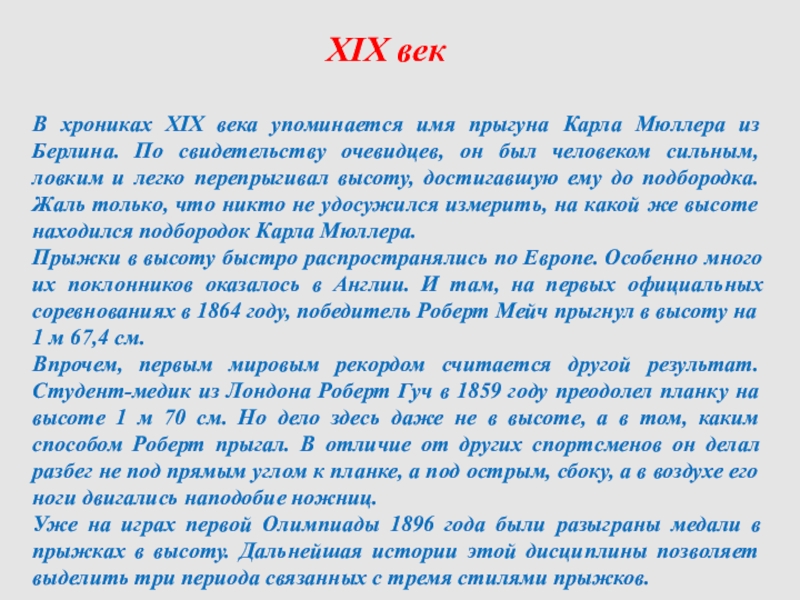 В хрониках XIX века упоминается имя прыгуна Карла Мюллера