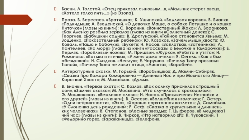 Слайд 11Басни. Л. Толстой. «Отец приказал сыновьям...», «Мальчик стерег овец», «Хотела
