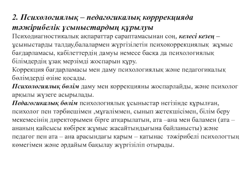 Слайд 162. Психологиялық – педагогикалық корррекцияда тәжірибелік ұсыныстардың құрылуы