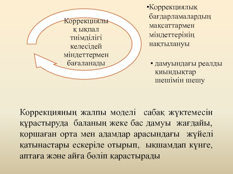 Слайд 12Коррекцияның жалпы моделі сабақ жүктемесін құрастыруда баланың жеке бас дамуы