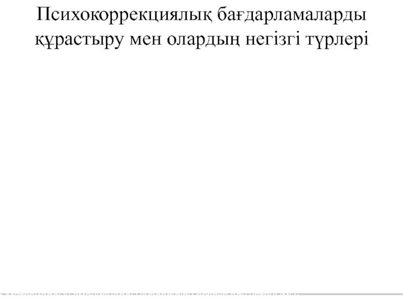 Слайд 7Психокоррекциялық бағдарламаларды құрастыру мен олардың негізгі түрлері