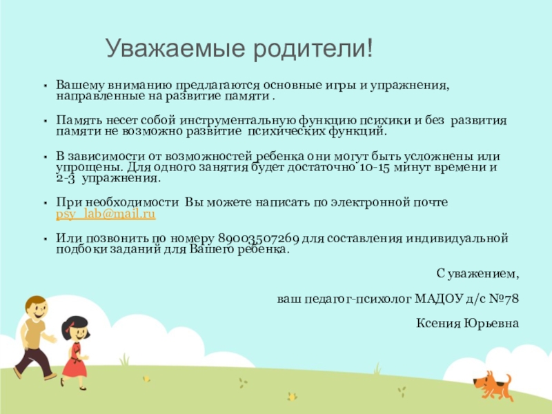 Вашему вниманию предлагаются основные игры и упражнения, направленные на