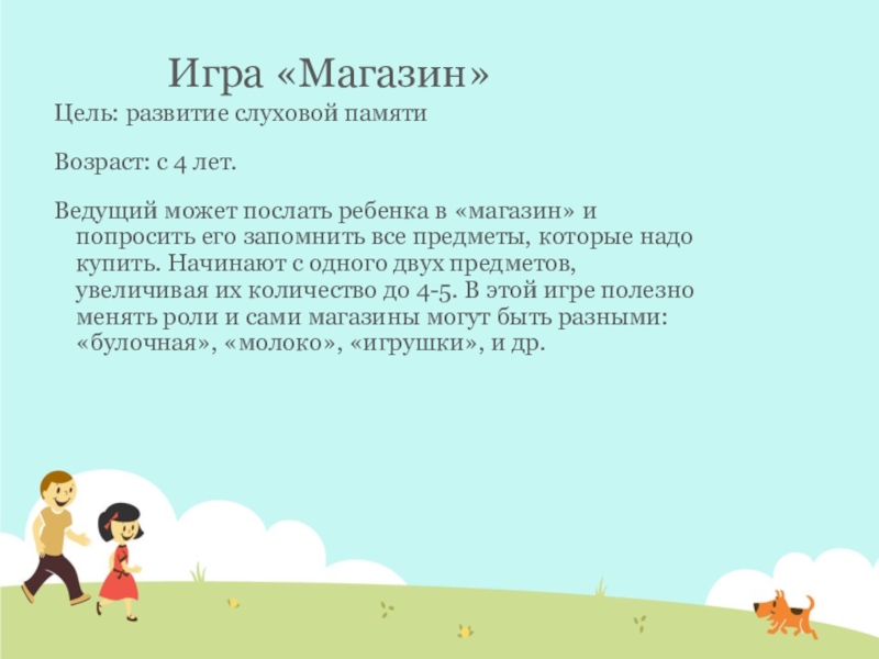 ребенка в «магазин» и попросить его запомнить все предметы, которые