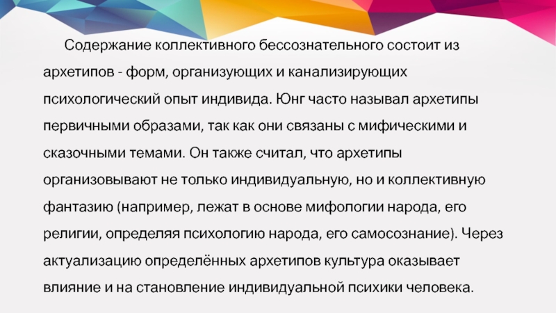 Слайд 6Содержание коллективного бессознательного состоит из архетипов - форм, организующих и