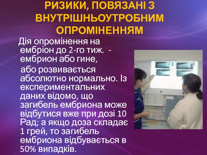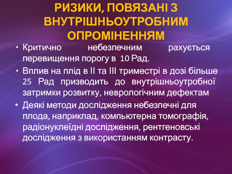 Слайд 12РИЗИКИ, ПОВЯЗАНІ З ВНУТРІШНЬОУТРОБНИМ ОПРОМІНЕННЯМ