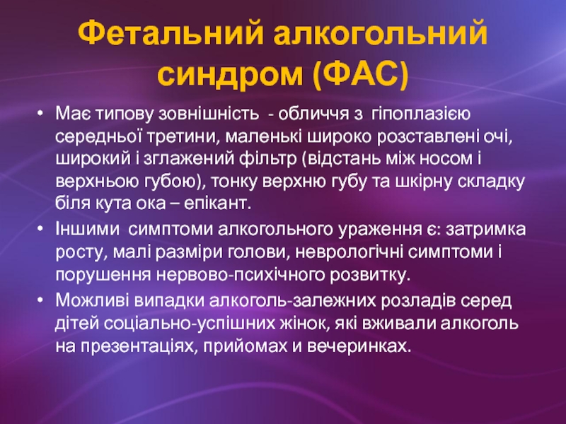 Слайд 7Фетальний алкогольний синдром (ФАС)