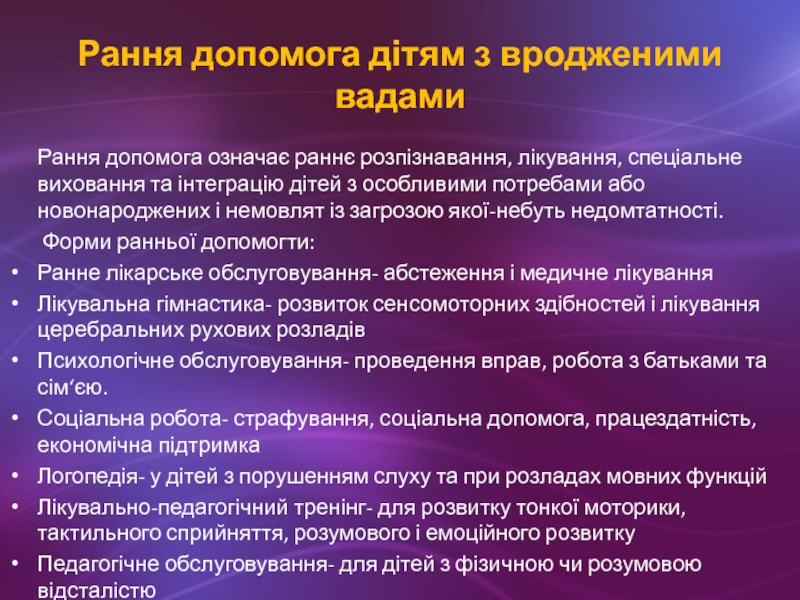 особливими потребами або новонароджених і немовлят із загрозою якої-небуть недомтатності.