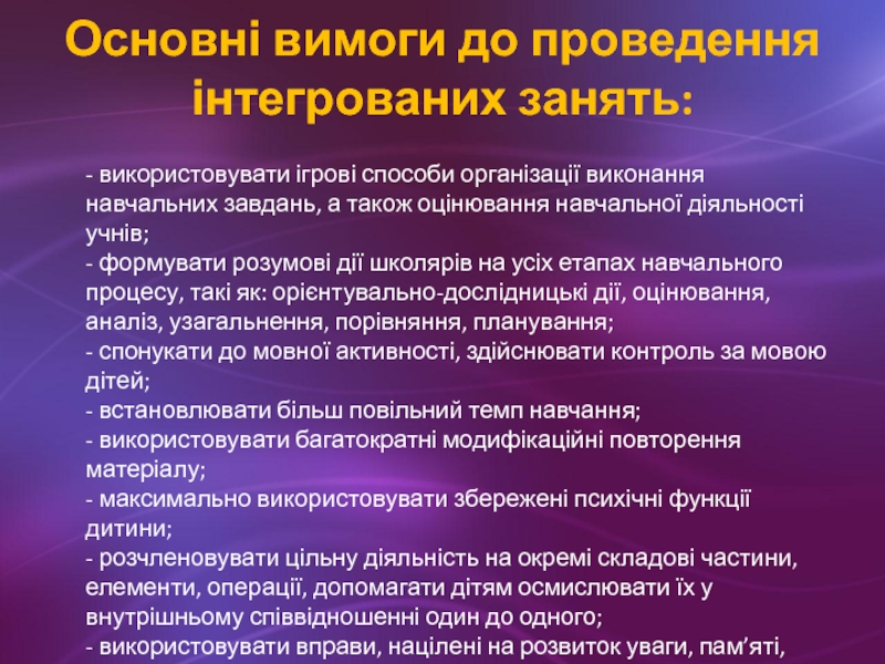 Слайд 14Основні вимоги до проведення інтегрованих занять: