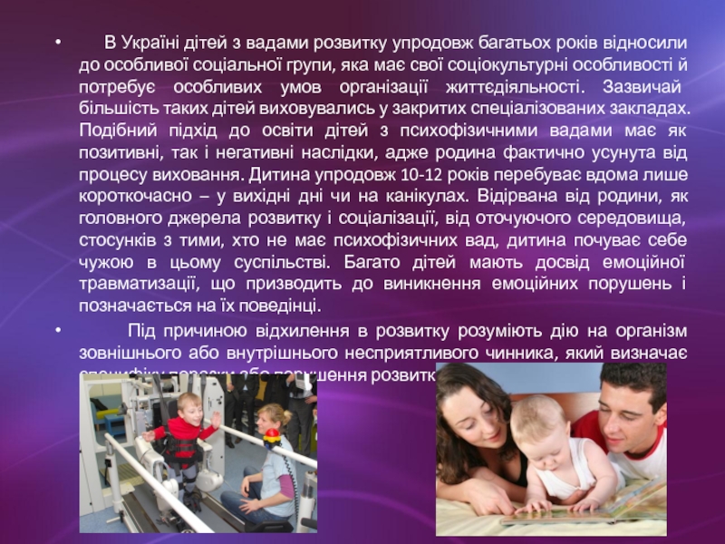 вадами розвитку упродовж багатьох років відносили до особливої соціальної групи,