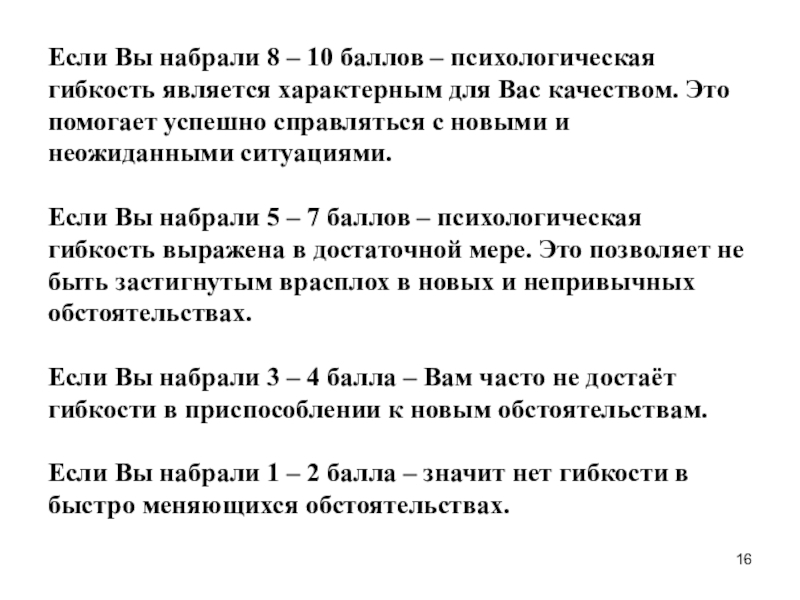 Слайд 16Если Вы набрали 8 – 10 баллов – психологическая гибкость