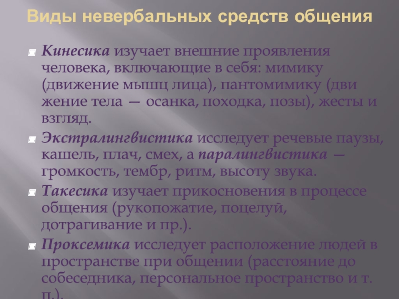 Слайд 25Виды невербальных средств общения