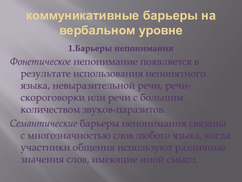 Слайд 22коммуникативные барьеры на вербальном уровне