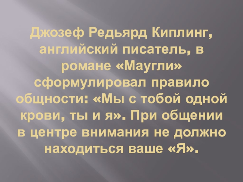 Слайд 41Джозеф Редьярд Киплинг, английский писатель, в романе «Маугли» сформулировал правило