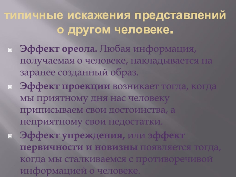 Слайд 14типичные искажения представлений о другом человеке.