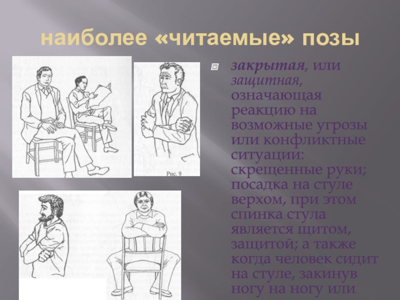 Слайд 35наиболее «читаемые» позы