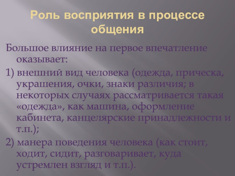Слайд 11Роль восприятия в процессе общения