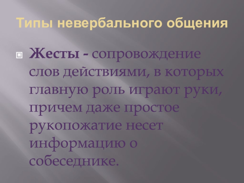 Слайд 26Типы невербального общения