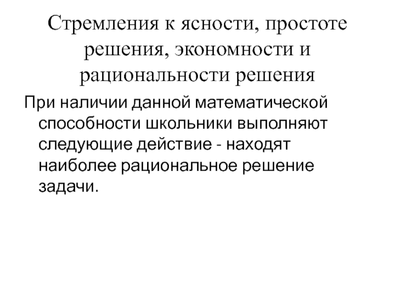 Слайд 25Стремления к ясности, простоте решения, экономности и рациональности решения