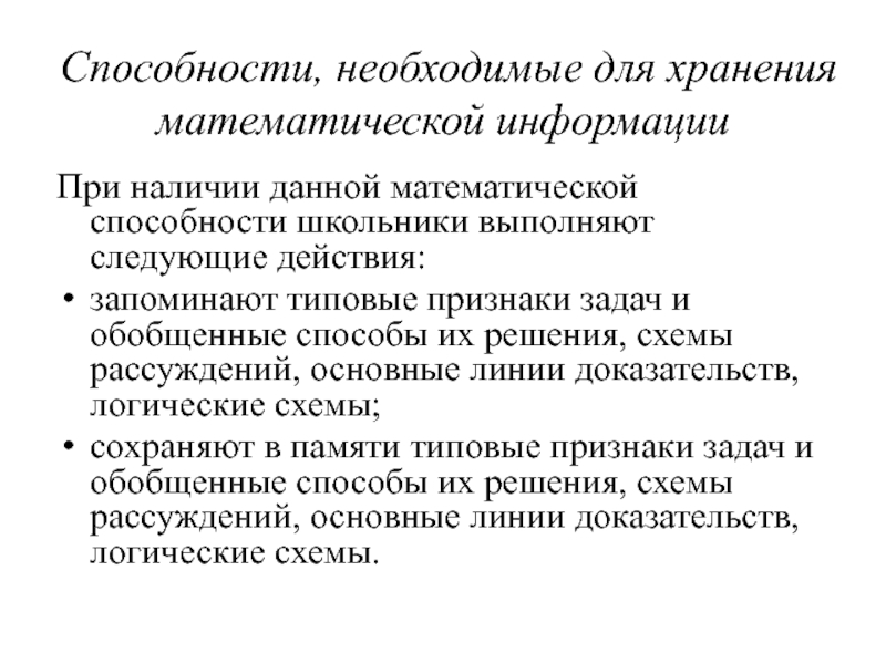 данной математической способности школьники выполняют действие - свертывание умозаключений.