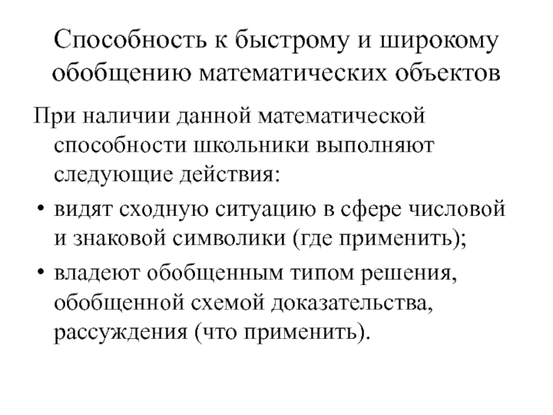Слайд 22Способность к быстрому и широкому обобщению математических объектов