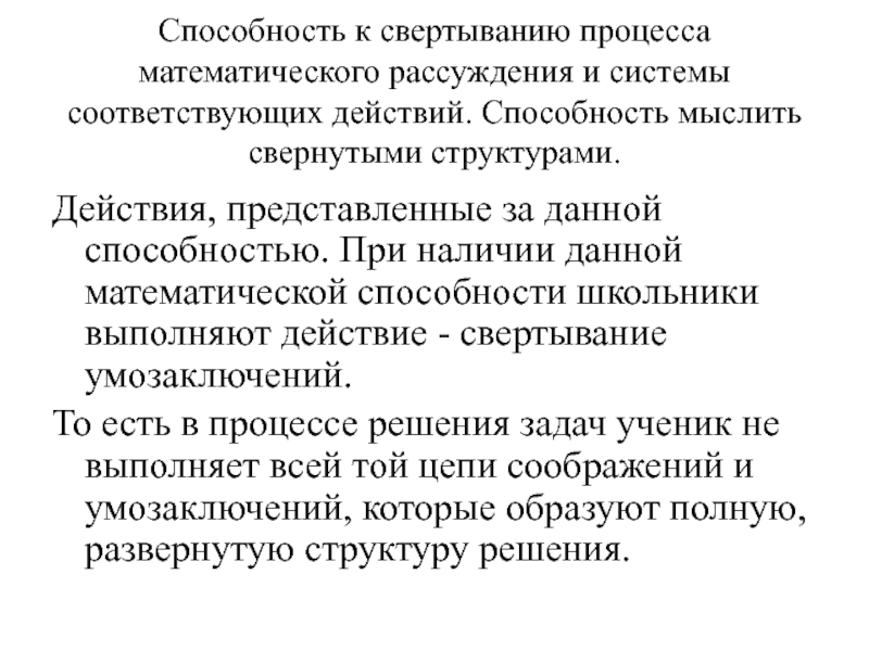 Слайд 23Способность к свертыванию процесса математического рассуждения и системы соответствующих действий.