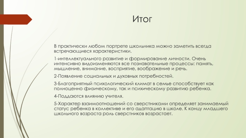 возрасте характеризуется непроизвольностью, хотя появляются элементы произвольности. Младший школьник приходит