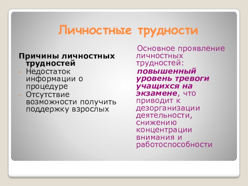 уровень тревоги учащихся на экзамене, что приводит к дезорганизации деятельности, снижению концентрации внимания и работоспособности