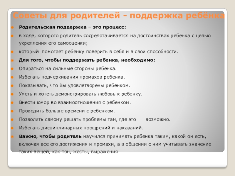 в ходе, которого родитель сосредотачивается на достоинствах ребенка с целью