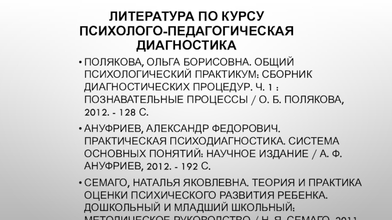 Двинин, Алексей Петрович. Современная психодиагностика: учебно-практическое руководство / А. П. Двинин, И. А. Романченко, 2012. - 283 с.