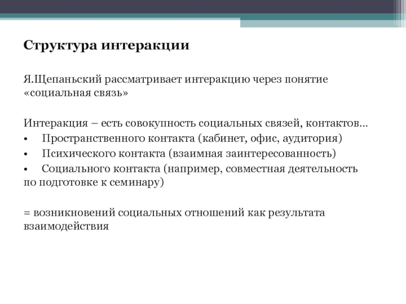 Я.Щепаньский рассматривает интеракцию через понятие «социальная связь»