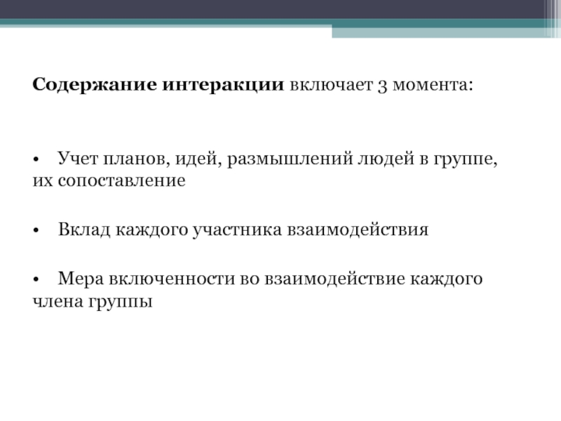 Содержание интеракции включает 3 момента: