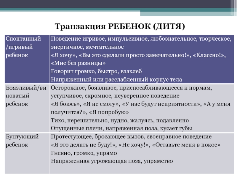 С точки зрения транзактного анализа, каждый человек как участник взаимодействия может занимать одну из трех условных позиций: