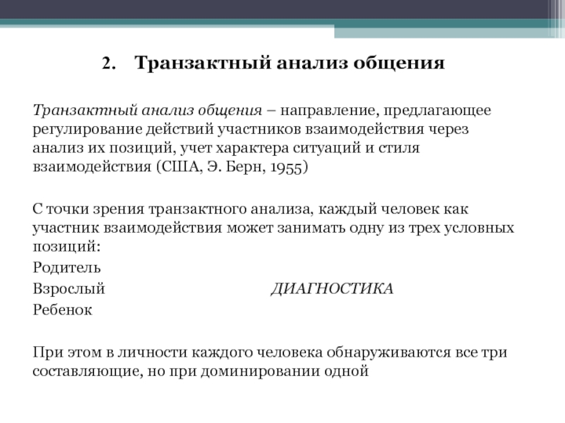 2. Транзактный анализ общения.