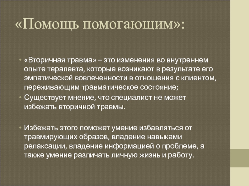Существует мнение, что специалист не может избежать вторичной травмы.