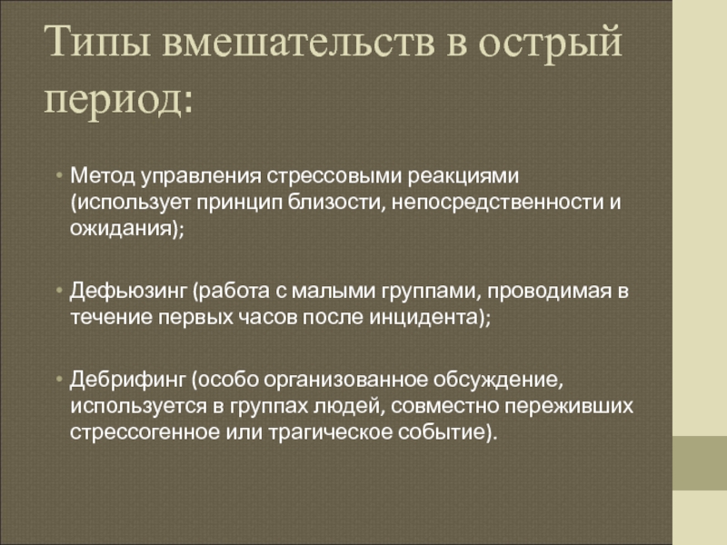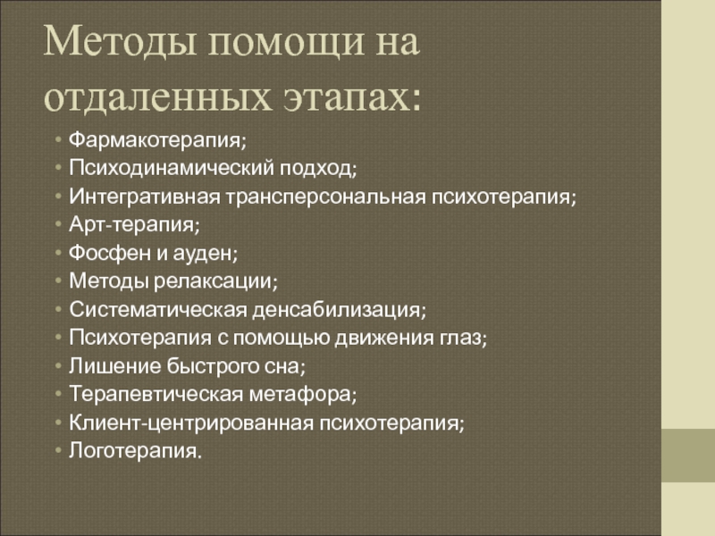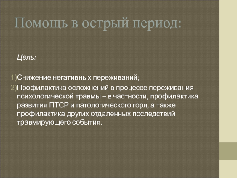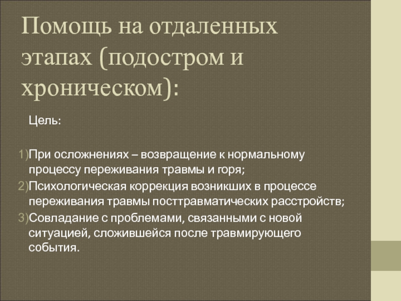 горя, а также профилактика других отдаленных последствий травмирующего события.