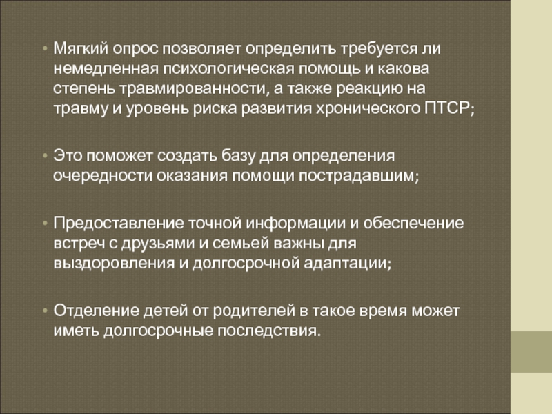 Мягкий опрос позволяет определить требуется ли немедленная психологическая помощь и