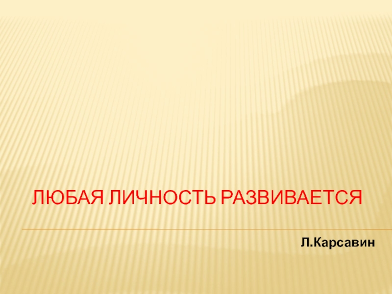 ЛЮБАЯ ЛИЧНОСТЬ РАЗВИВАЕТСЯЛ.Карсавин