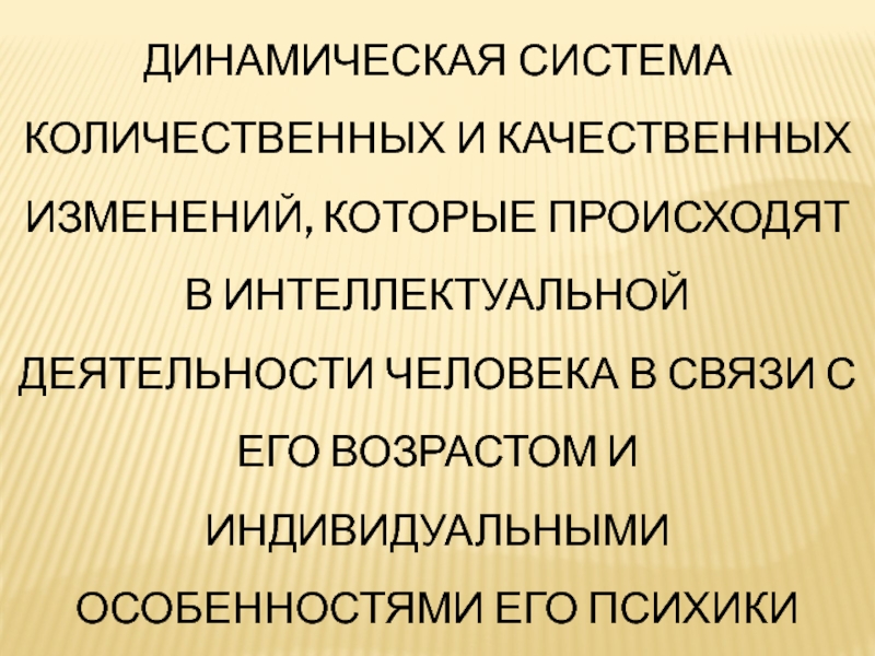 УМСТВЕННОЕ РАЗВИТИЕ – СЛОЖНАЯ ДИНАМИЧЕСКАЯ СИСТЕМА КОЛИЧЕСТВЕННЫХ И КАЧЕСТВЕННЫХ ИЗМЕНЕНИЙ, КОТОРЫЕ ПРОИСХОДЯТ В ИНТЕЛЛЕКТУАЛЬНОЙ ДЕЯТЕЛЬНОСТИ ЧЕЛОВЕКА В