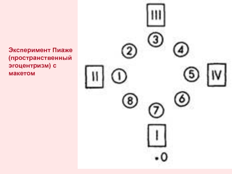 Слайд 46Эксперимент Пиаже (пространственный эгоцентризм) с макетом
